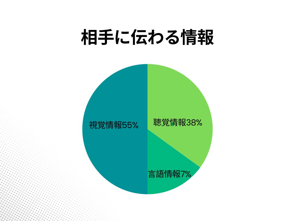 まず大前提。人間同士のコミュニケーションは、相手に伝わる情報量は、言語情報よりも非言語情報の方が圧倒的に多いです。