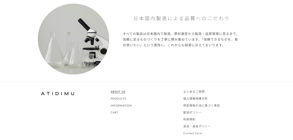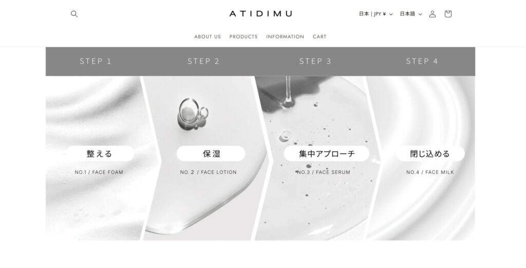 ATIDIMU(アティディム)は、企画から製造まで全て日本製です。日本人の肌質に合わせて造られているので、スキンケアの初心者から上級者まで納得できる使い心地を実現しています。